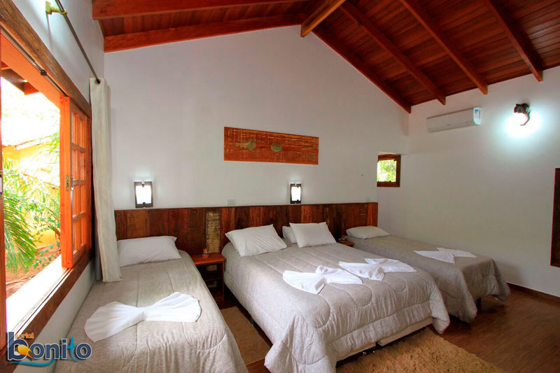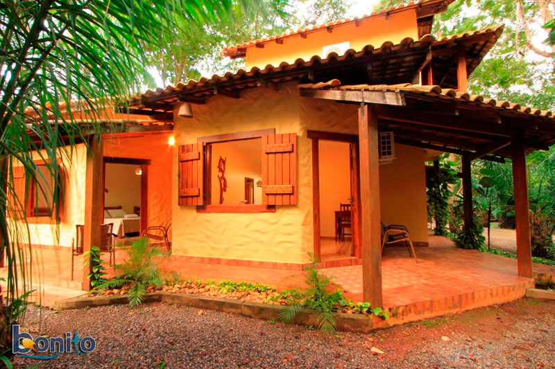 Café da manhã incluso na diária e temos serviço de restaurante no jantar a La Carte (opcional), bar, piscina, 1.000 metros de trilhas de madeira as margens do rio Formoso, locais para banho nos rios Formoso e Formosinho, redário, quadra de vôlei-de-areia, WiFi, passeio de Bóia Cross no Rio Formoso (opcional), passeio de flutuação no Rio Formoso (opcional), passeio de Arvorismo (opcional), passeio de trilha no hotel (incluso da diária).Localização: