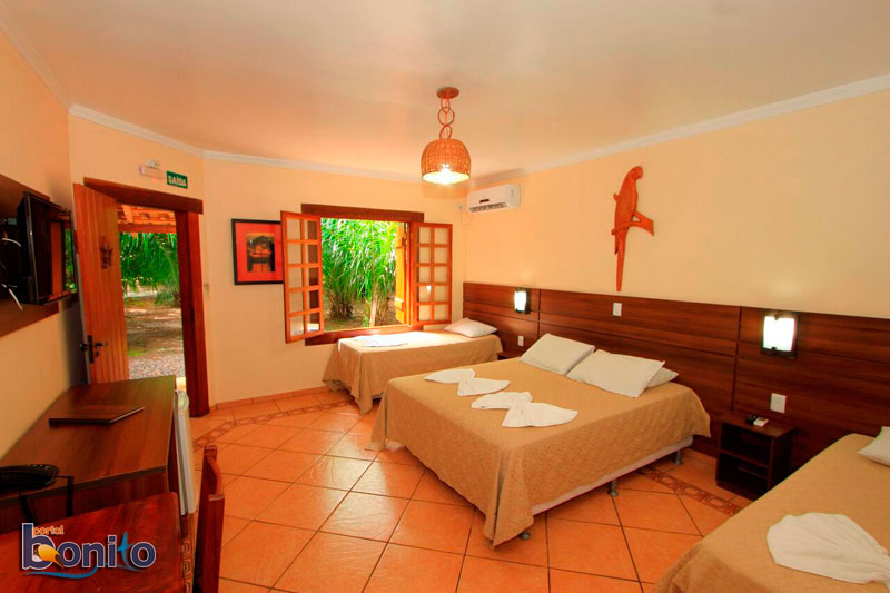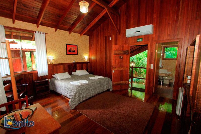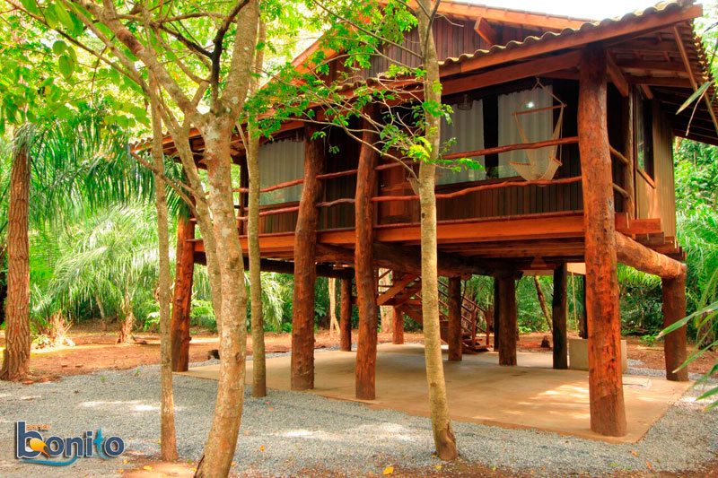 Com uma área verde de 40 hectares cercada por dois rios de águas cristalinas, Rio Formoso e Formosinho, o Hotel Cabanas é o lugar ideal para os amantes da natureza. O hotel oferece hospedagem em apartamentos e aconchegantes cabanas suspensas em meio às árvores, todos equipados com TV LED, frigobar e Ar-condicionado Split. Entre dois rios cristalinos, oferecemos ainda como área de lazer, redário, piscina, quadra-vôlei-de areia, mais de 1000 metros de trilhas de madeira à margem do rio, além de vários locais de banho nos cristalinos rios Formoso e Formosinho, onde você pode praticar mergulho com snorkel. O Hotel Oferece ainda diversas atrações que são realizadas dentro de sua área. Algumas atrações são inclusas na diária e outras opcionais. Apartamentos Standard e superior, todos com Ar Split, TV LED, Frigobar. Cabanas casal com Ar Split, TV LED, Frigobar com cama King Size, varanda e garagem coberta Cabanas master (até 4 pessoas) com 80 metros quadrados com dois ambientes, cama king.