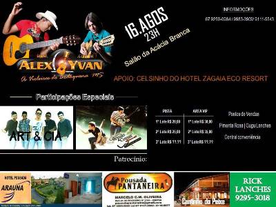 Informações sobre o grande show de Alex e Yvan podem ser obtidas através dos fones: (67) 9250-0984/ 9983-3909/ 9111-5543.